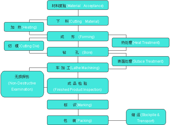 不銹鋼及鎳基合金法蘭生產(chǎn)工藝流程一般分為以下七個步驟:材料、斷料(下料)、加熱、鍛造(成形)、熱處理、切削(車加工)、檢查。